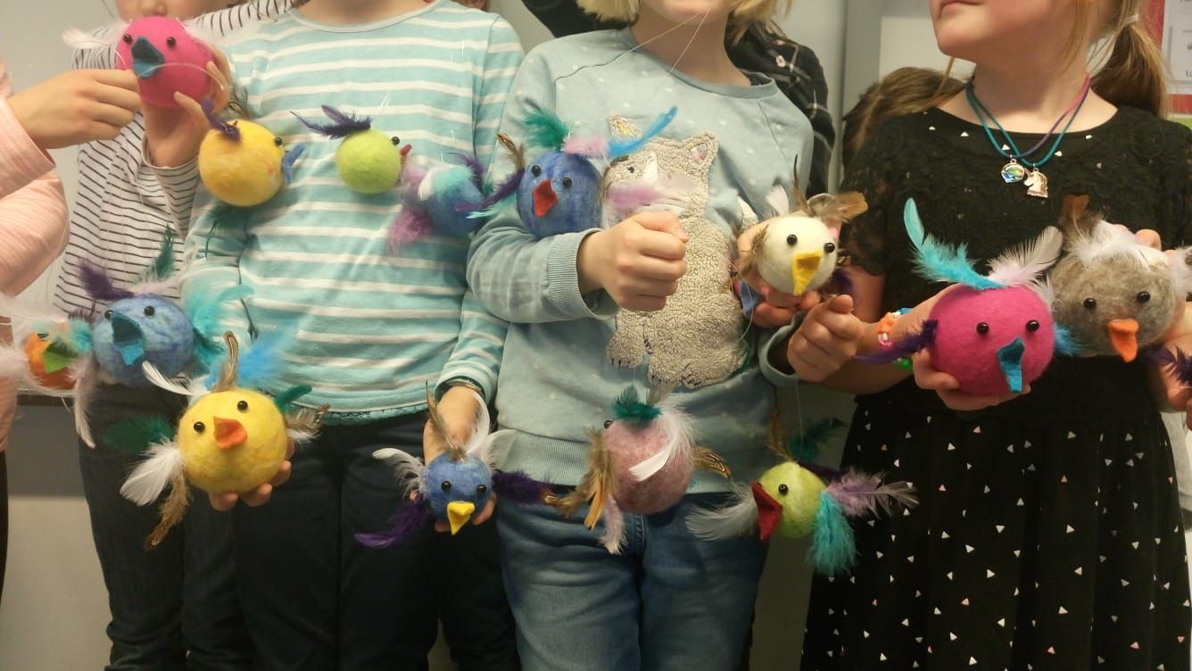 Ebenso wie Kinderkurse können Sie bei mir auch Kindergeburtstage feiern. Da nass gefilzt wird, bietet es sich an, dass die Geburtstagsgesellschaft – maximal zehn Kinder – zum Filzen in meinen Werkraum kommt.